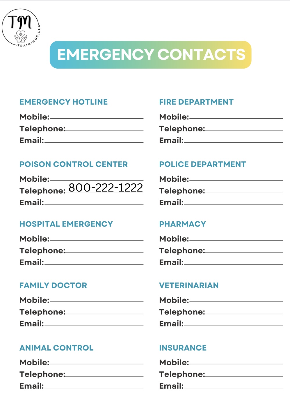 Not everyone has access to your phone contacts in an emergency. Have the contacts readily available in an emergency situation! Download my pdf for Free.